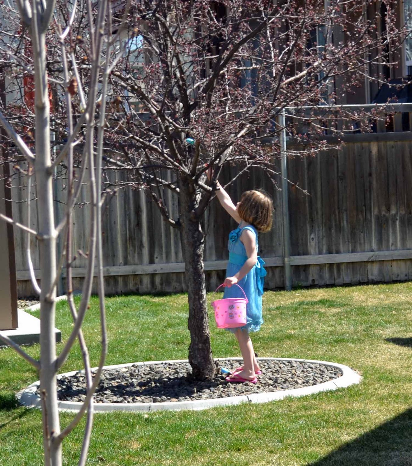We had two Easter egg hunts for the kids (Rebecca's wonderful idea). We filled tons of eggs with candy and stickers. The girls went first. They had a blast.
